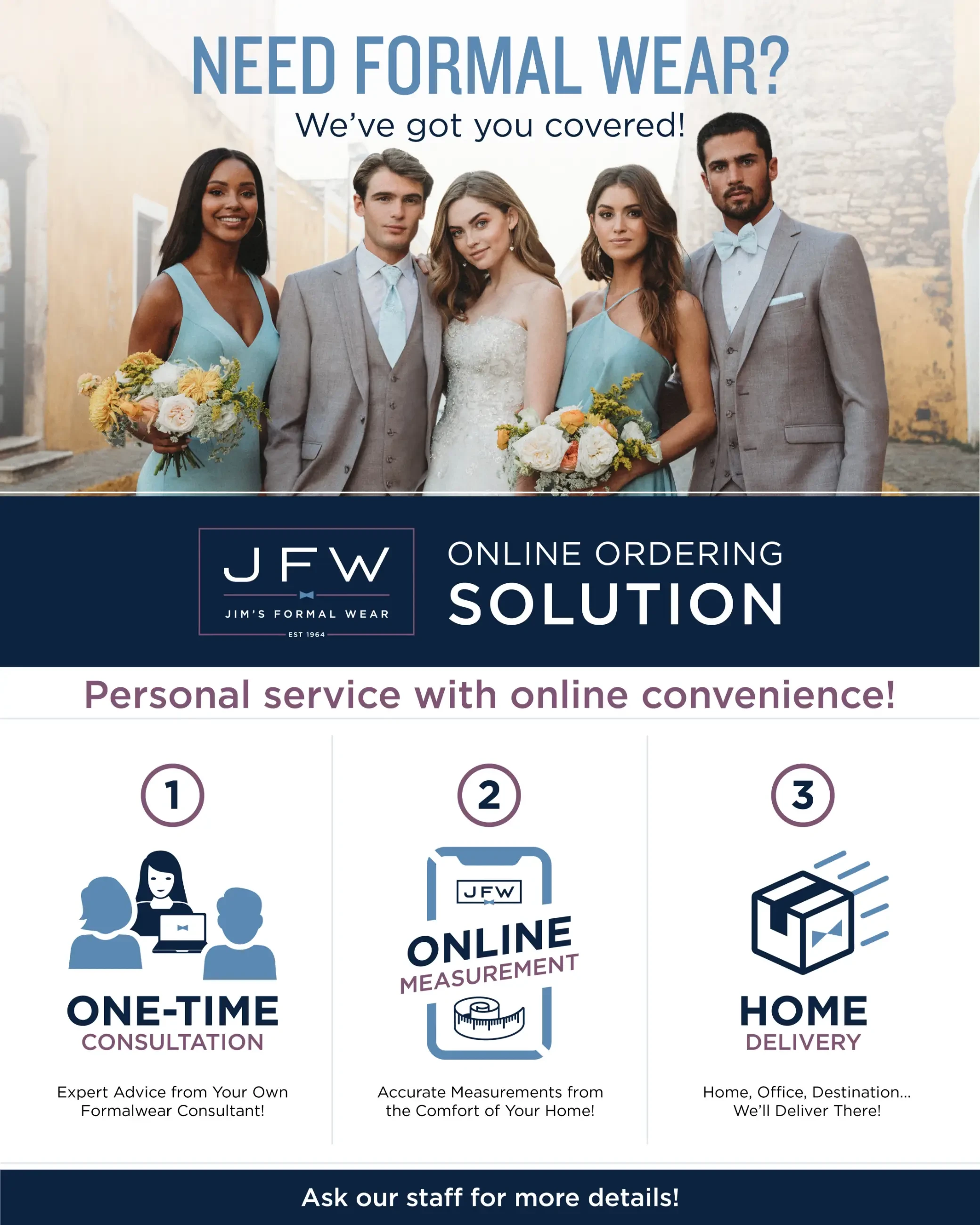 Planning a wedding is challenging enough. Your suit shopping should be simple, convenient, and confidence-boosting. With virtual fittings, at-home try-ons, curated selections, and direct shipping, you and your wedding party can look amazing without the stress.