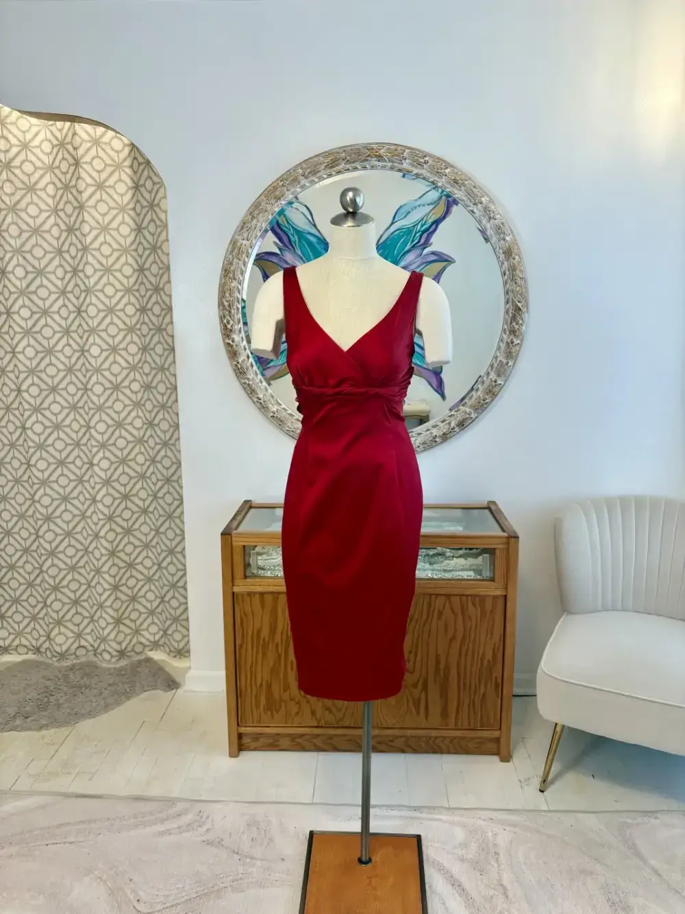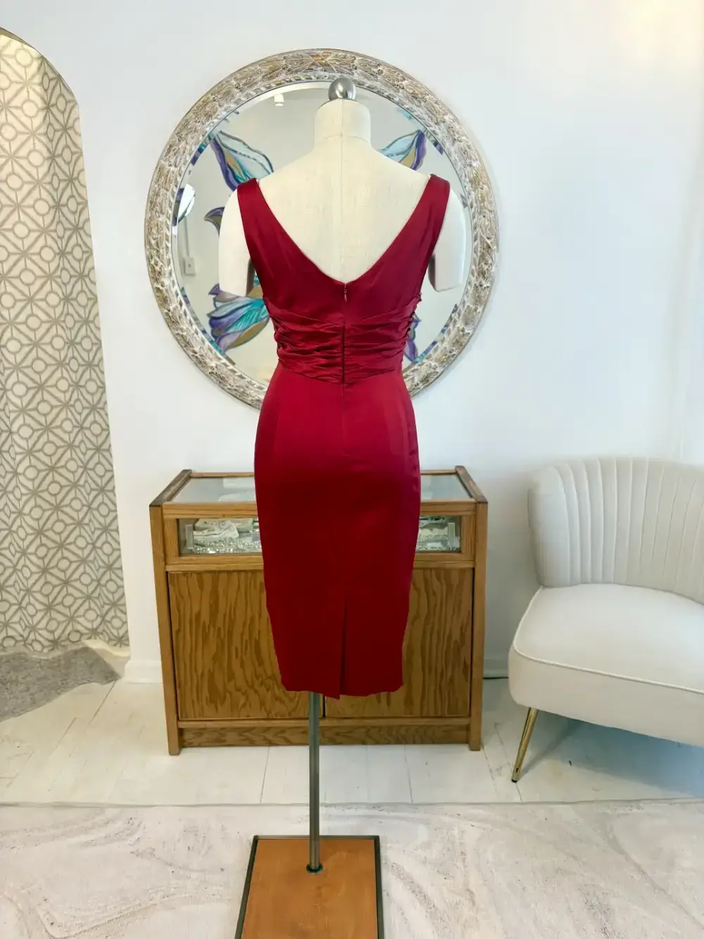 Perfect for cocktail parties, weddings, or special occasions, this dress offers a polished and stylish look for guests, bridesmaids, or even a modern Mother of the Bride or Groom.