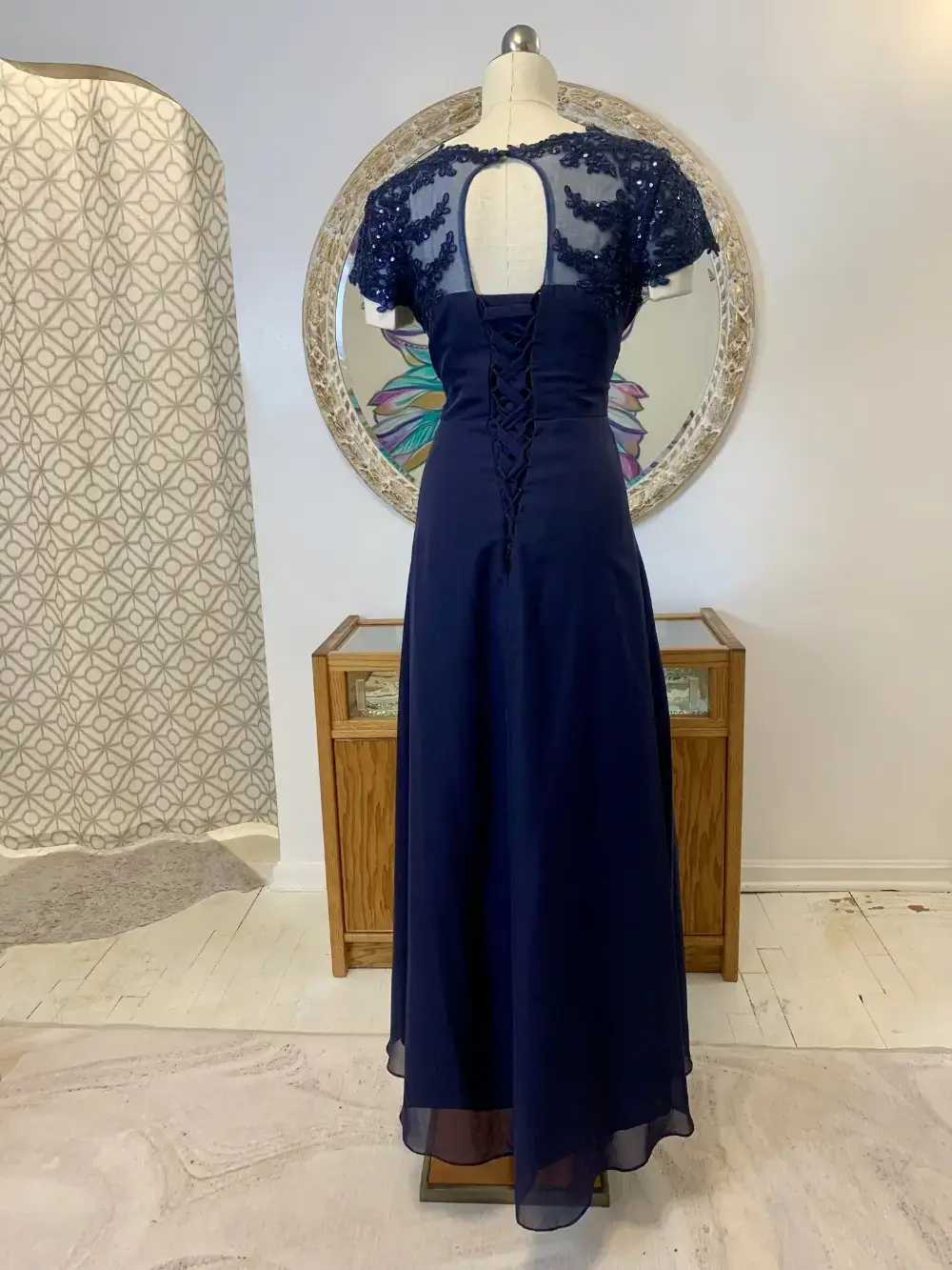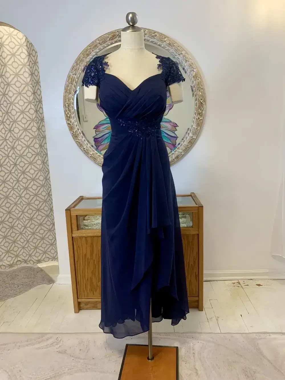 This elegant navy dress is a beautiful choice for Mother of the Bride, Mother of the Groom, or any special occasion where you want to feel polished and confident.