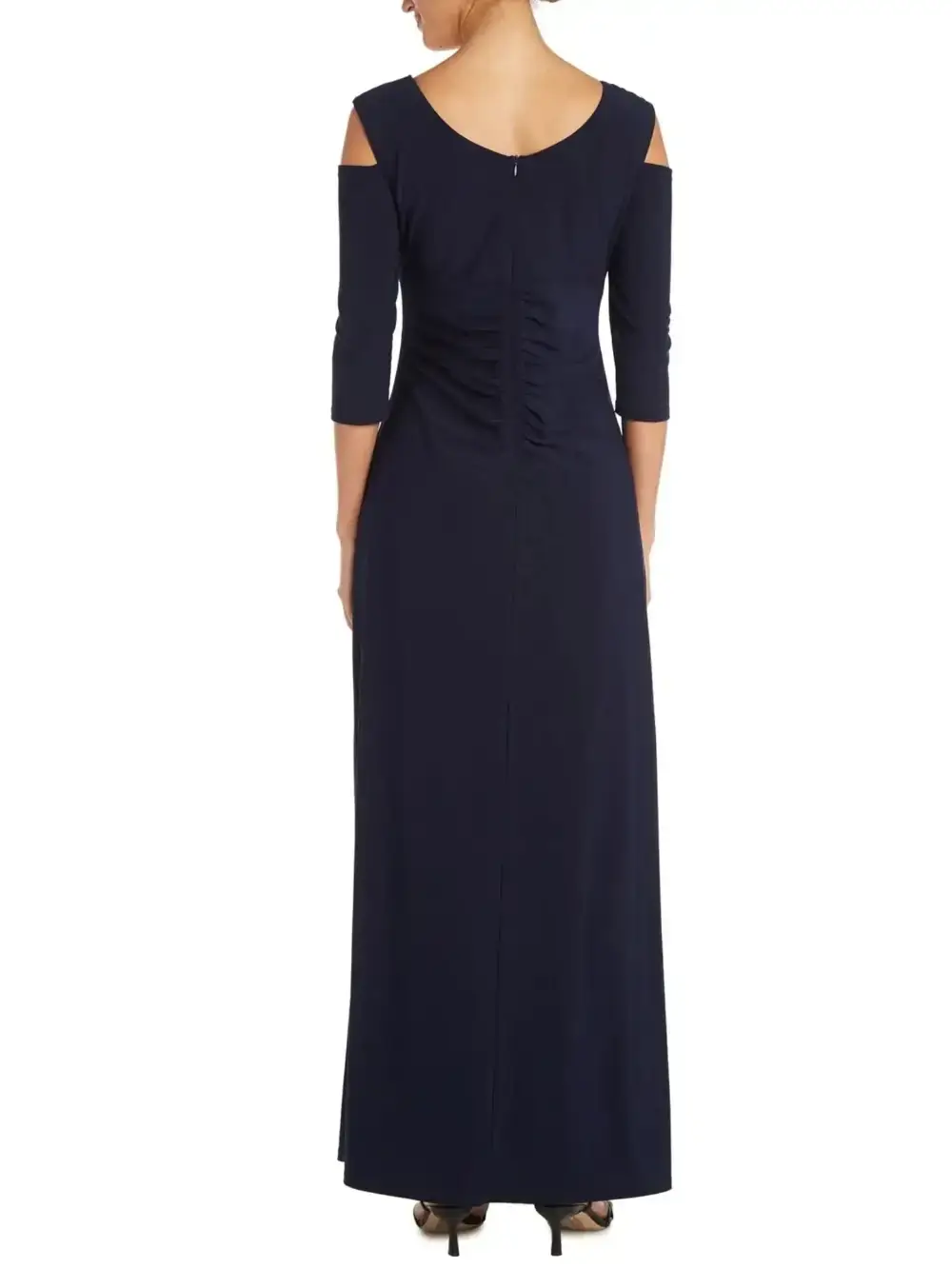 This plus size evening gown is a true classic, with a sweetheart neckline, cold shoulder design, and ruching that flatters every curve.