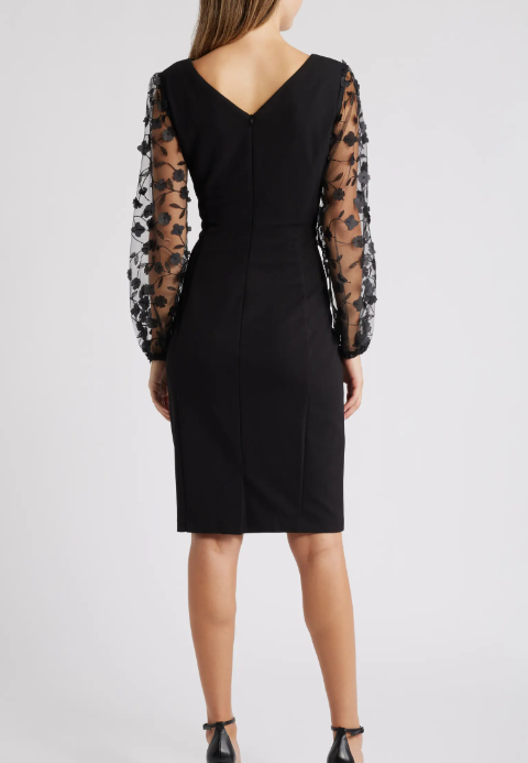 Radiate timeless elegance in this beautifully detailed sheath dress, perfect for the Mother of the Bride, wedding guests, or any special occasion. Featuring delicate embroidered leaf and floral appliqués, this sophisticated design brings just the right touch of texture and charm. The round neckline and knee-length straight skirt create a classic, flattering silhouette that transitions effortlessly from wedding ceremonies to evening celebrations.